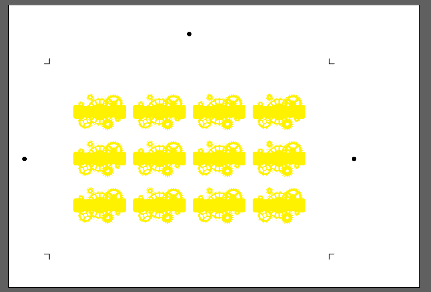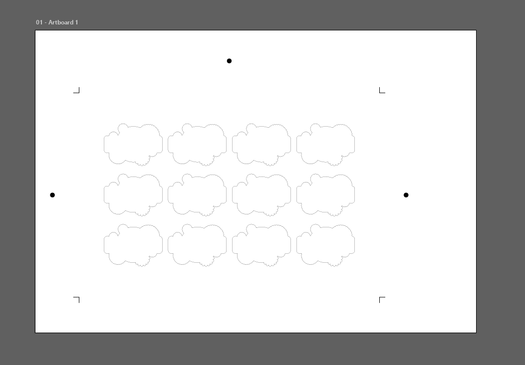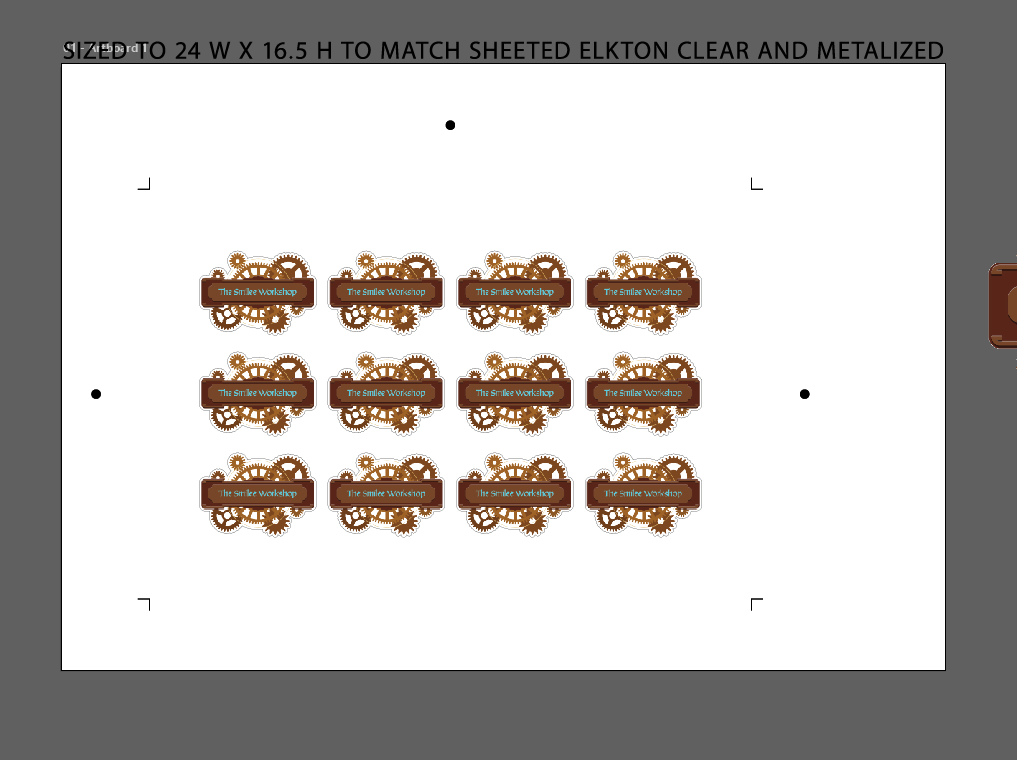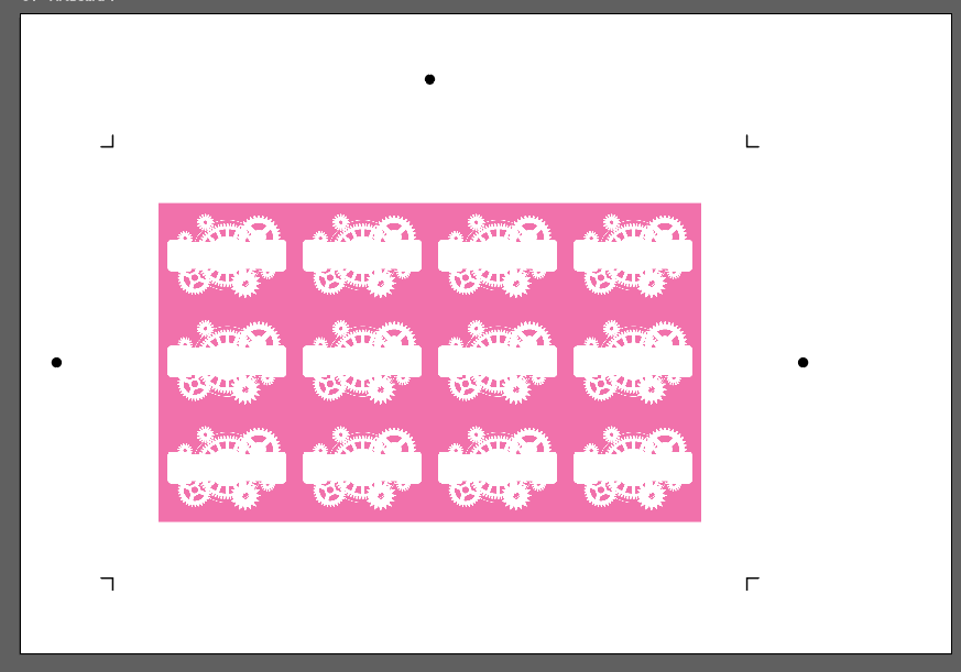 The art must fit inside the registration and cut marks to be cut on the Mimaki cutting plotter.