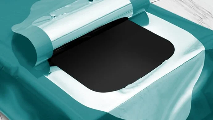 As the overlay printed onto the clear material, I cut the preprinted film with extra space for seam allowance, then placed onto a cutting mat.